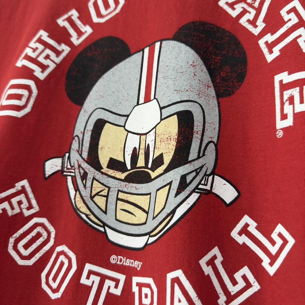 - Modern red t shirt by Disney featuring front graphic of Mickey in American football helmet with "Ohio State Football" text around