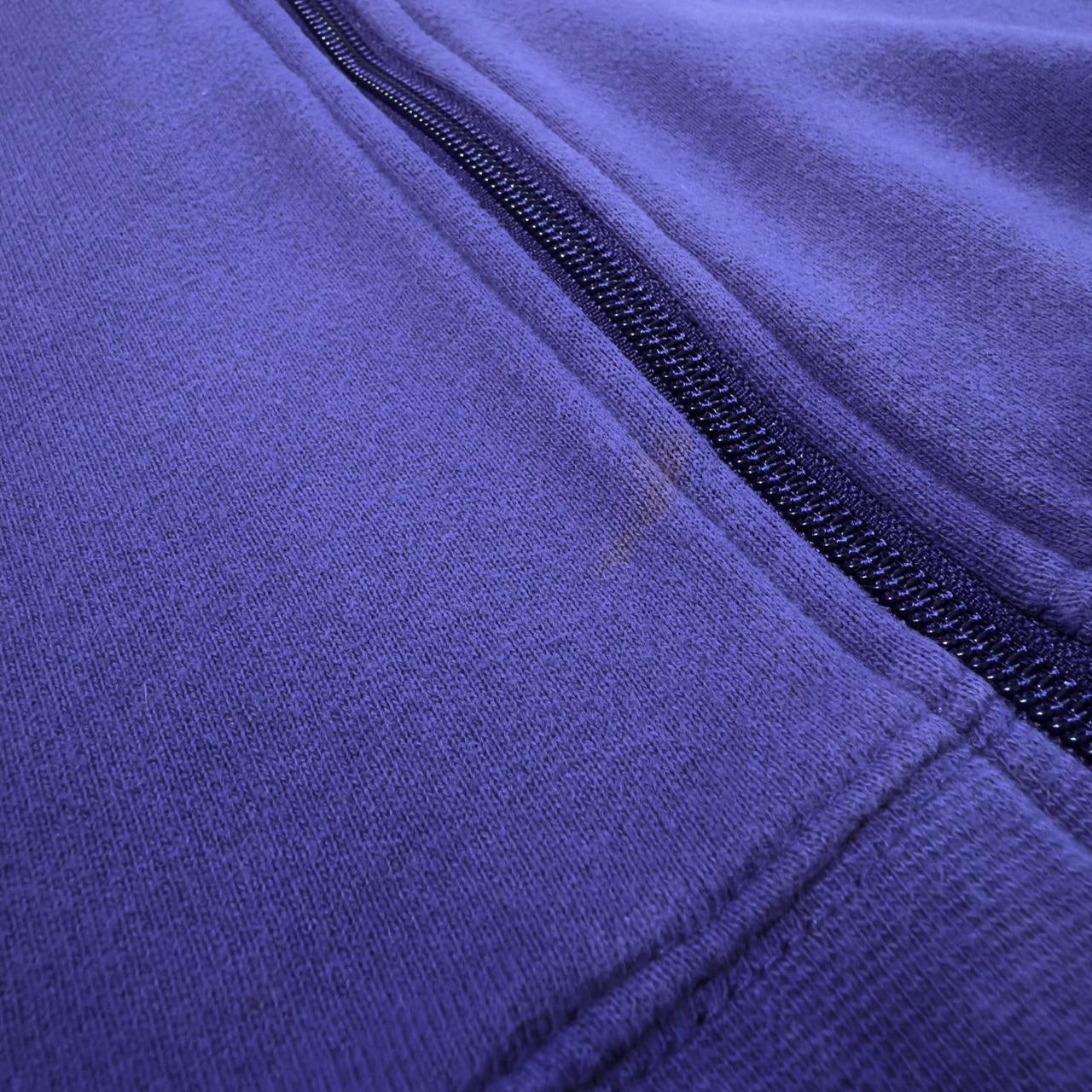 - 00s purple zip up hoodie by Disneyland featuring embroidered Disneyland D with Mickey and Friends with text logo below.