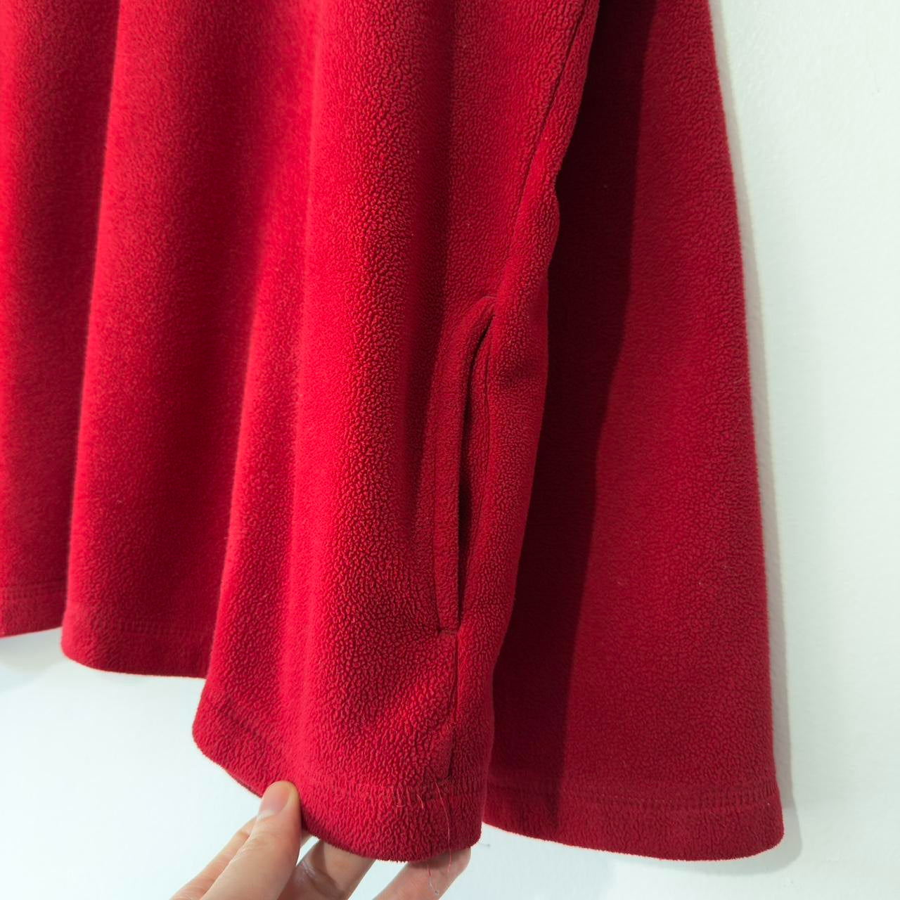 - 2000s red fleece quarter zip by Disney featuring embroidered "N" on chest, with mickey near pockets.