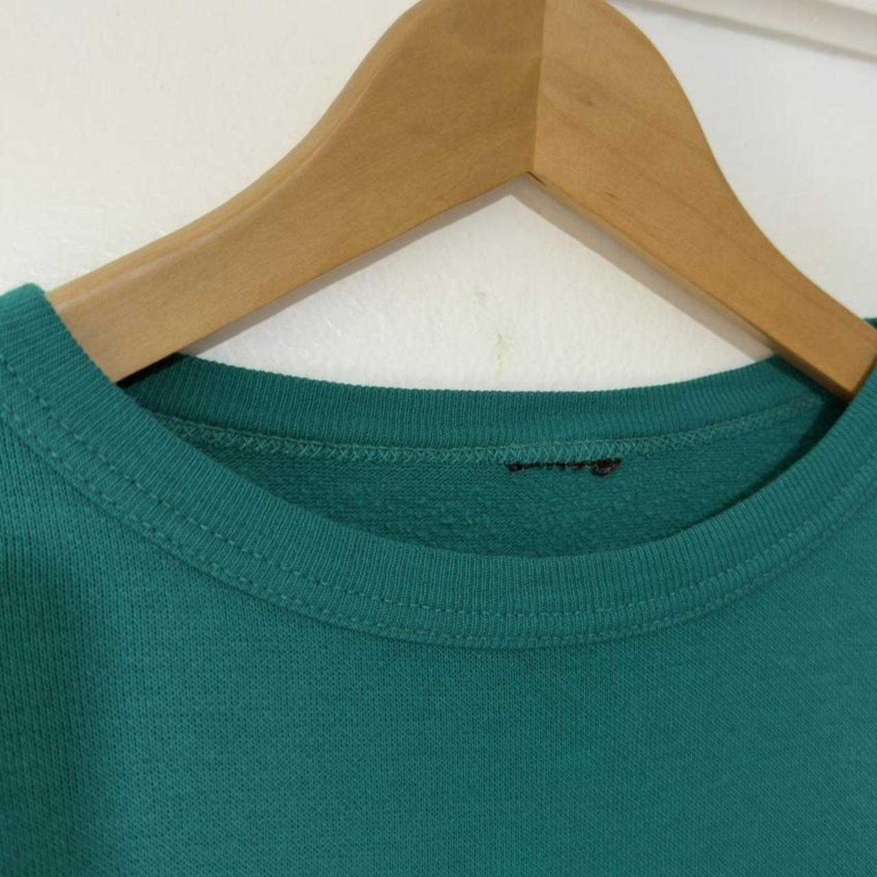 - 90s green teal relaxed by mickey unlimited featuring front graphic of Minnie and Mickey dancing with text "Mickey and Minnie in Action". Relaxed and thinner sweatshirt, feels like an Acylic material.
