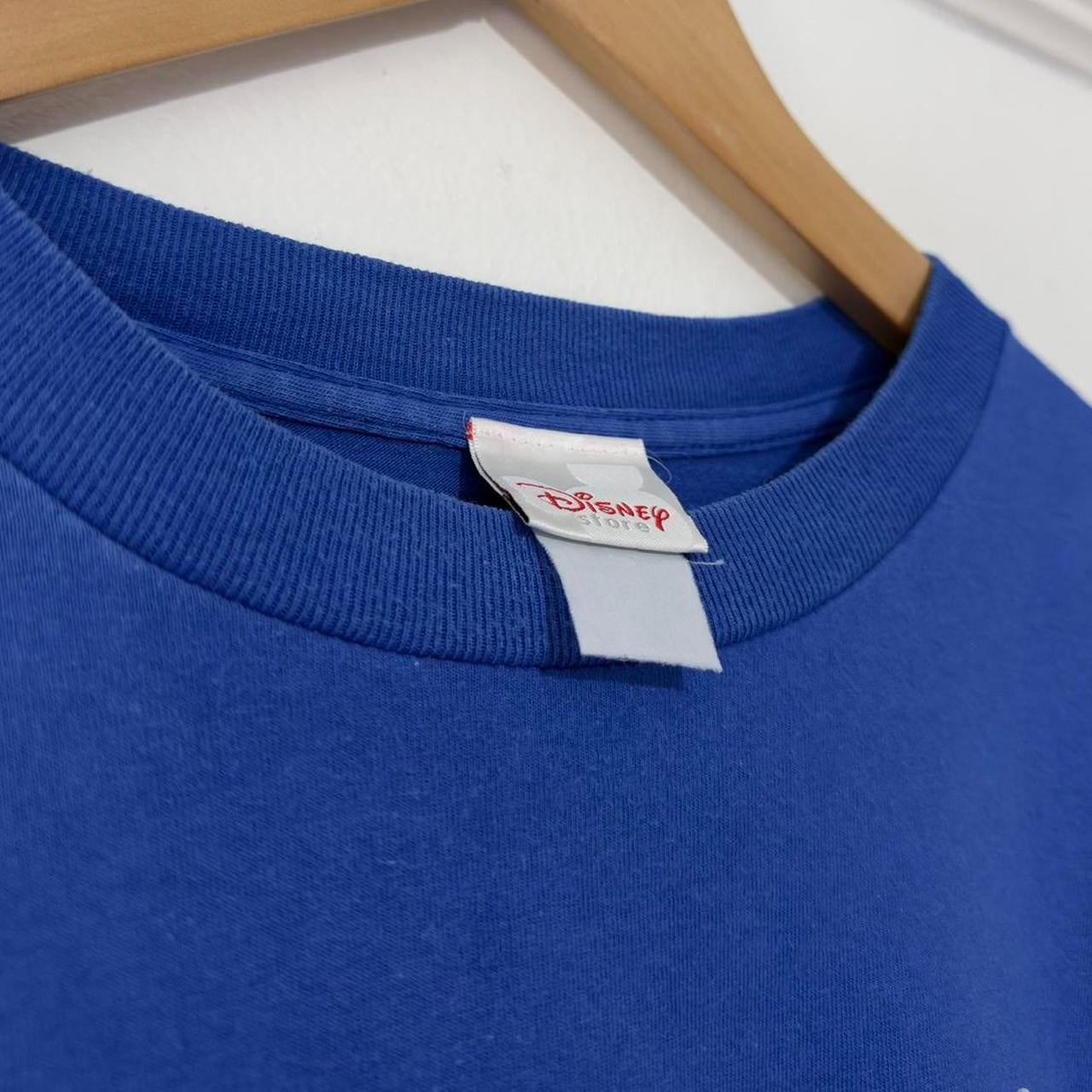 - early 00s blue long sleeve by Disney Store featuring front graphic of Mickey next to Disney "D" with Disney letters down sleeve made out of characters.