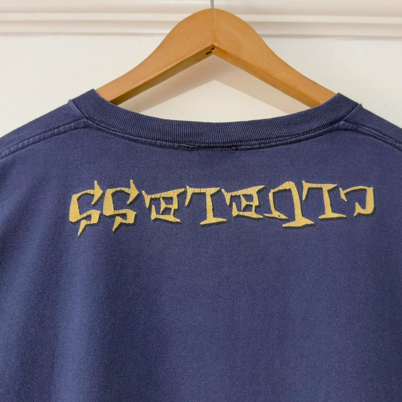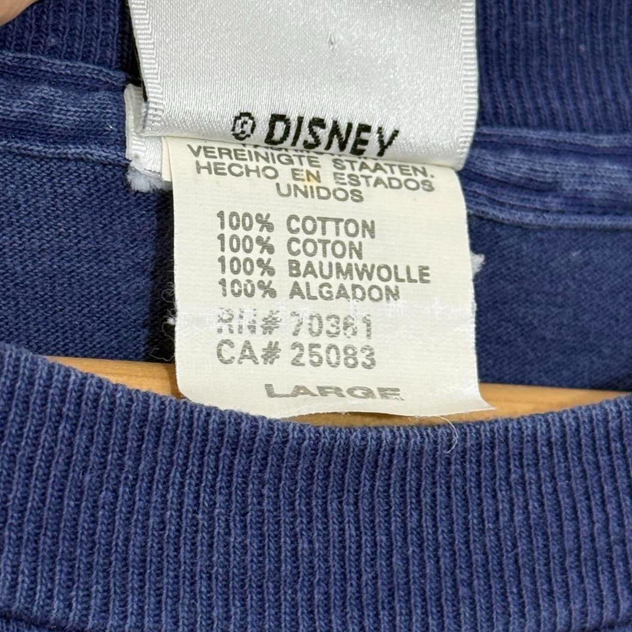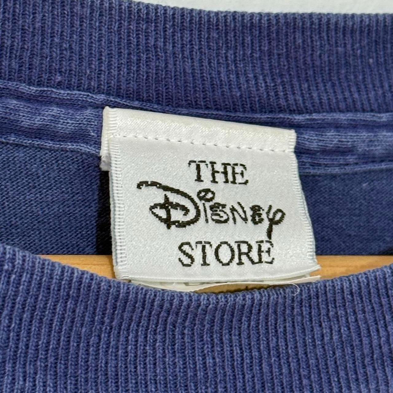 - 90s navy t shirt on The Disney Store tag with graphic of drawing style Dopey on front, with "Clueless" upside down under the collar on the back.