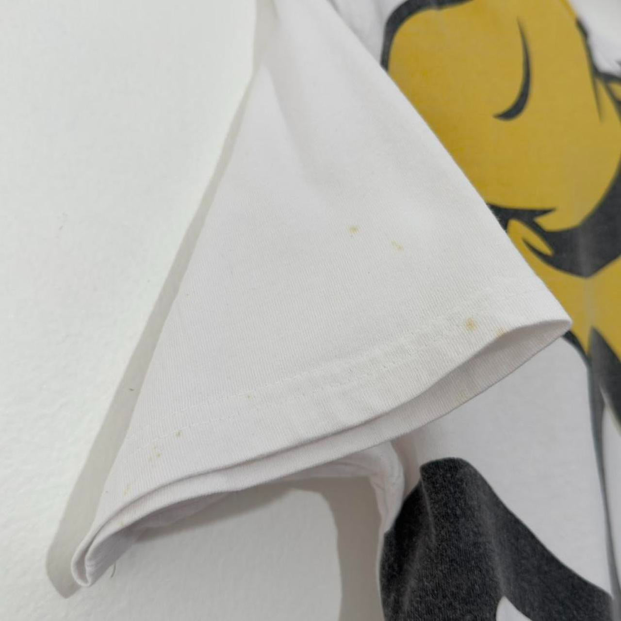š Condition: overall a cool t shirt! great design but does have minor flaws throughout, small markings to sleeves, faint ones on front near goofy ear, pin holes on shoulders, see photos