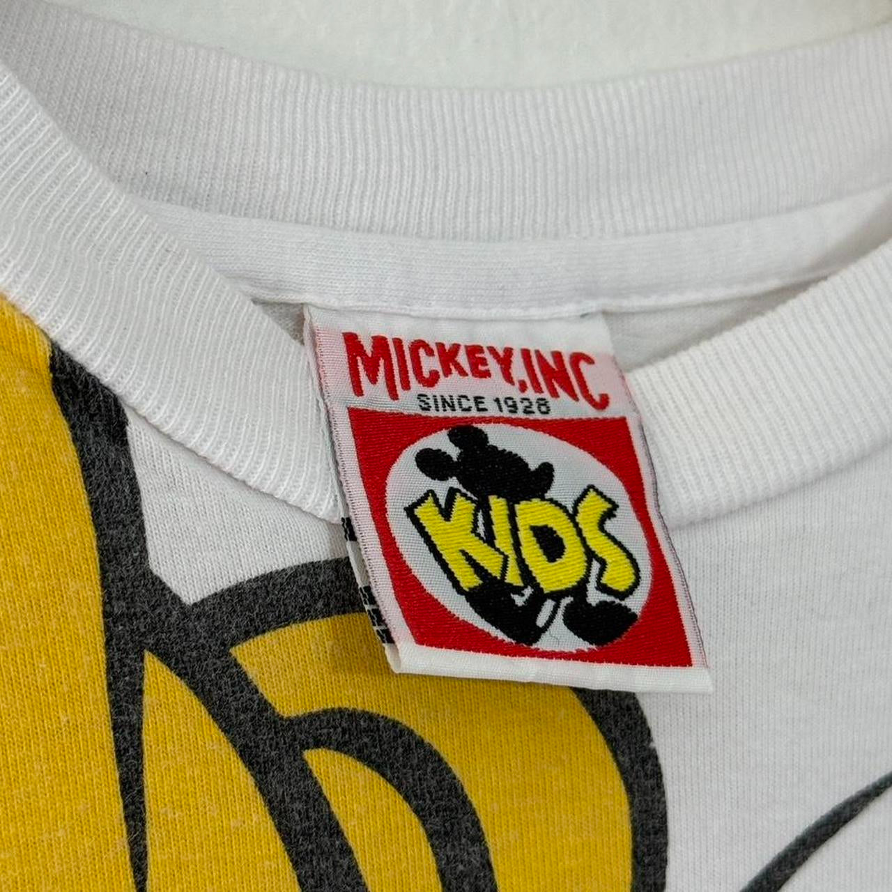 - 90s white t shirt by Mickey Inc Kids featuring big face goofy on the front.