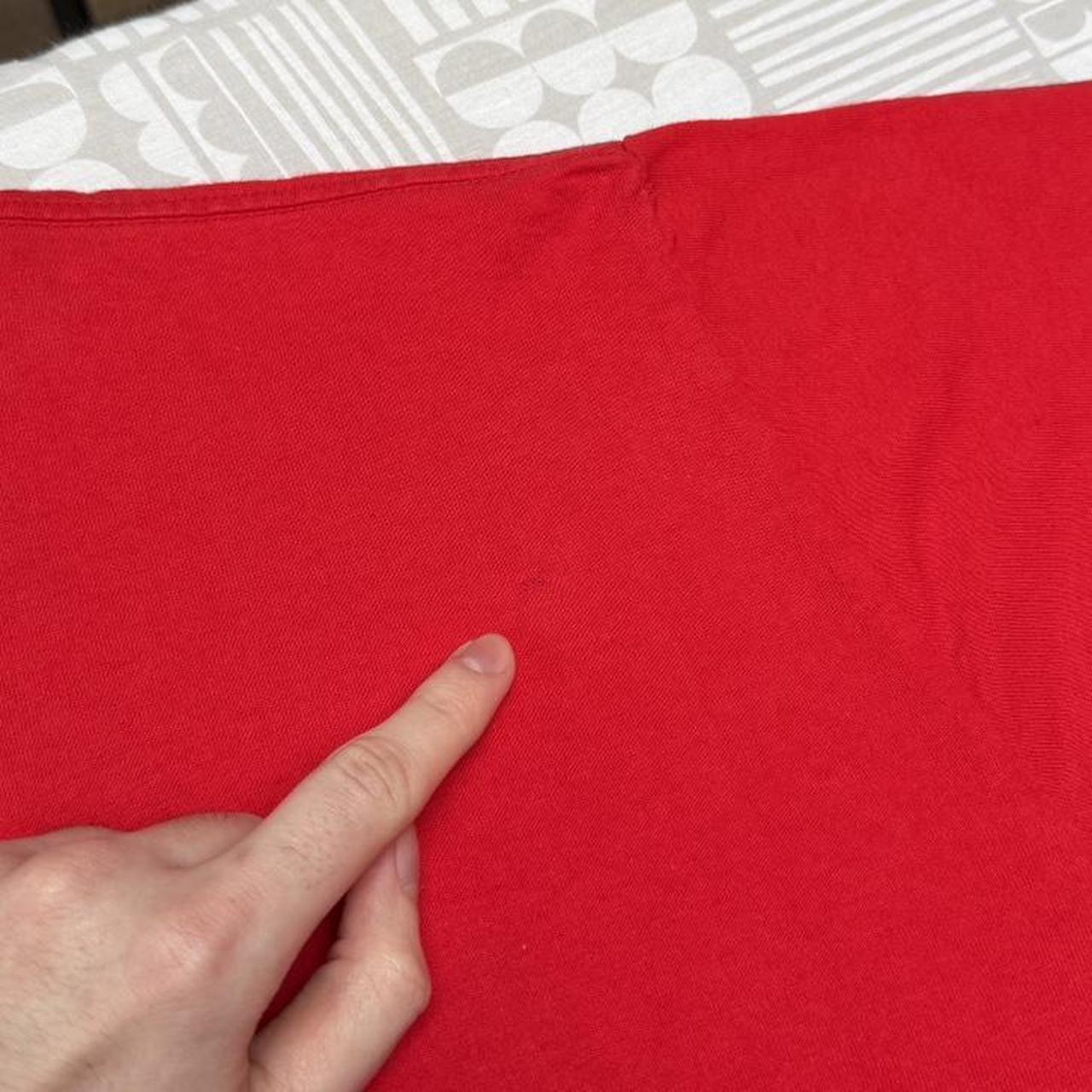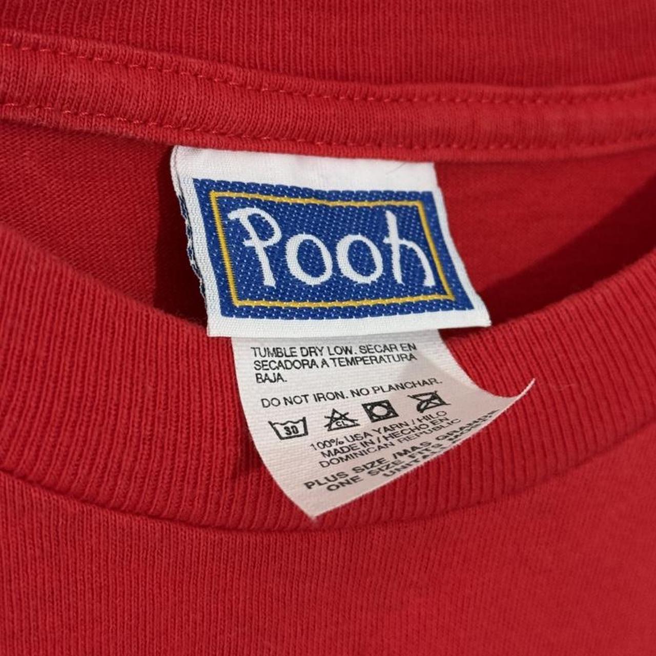 - 90s red t shirt by Pooh featuring front graphic of Santa Winnie the Pooh with text "Merry Old Bear"