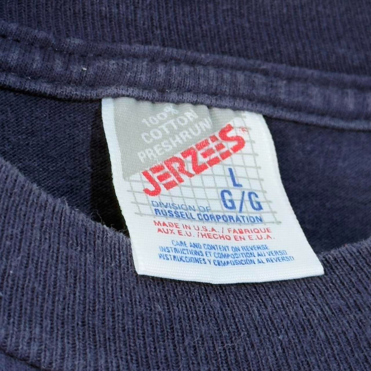- Made in USA 90s navy t shirt by Jerzees featuring all over print front and back of sailing boats and sea, with Mickey and Goofy sailing on the S.S Mickey on front, with "Corpus Christi Texas" in small white text on side chest.
