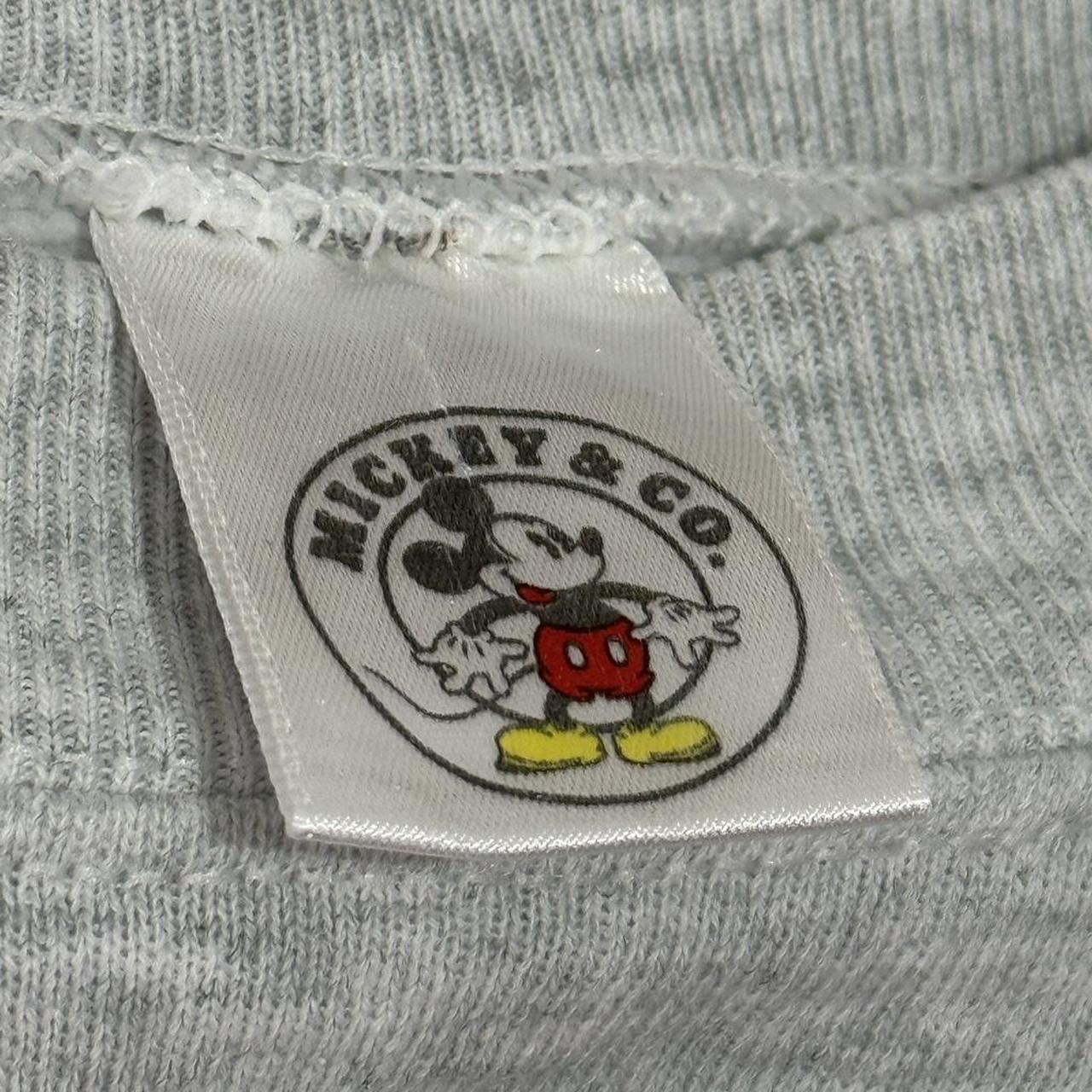 - Made in USA 90s grey sweatshirt by Mickey & Co featuring front graphic of jumping mickey with ring of red text "Mickey & Co"