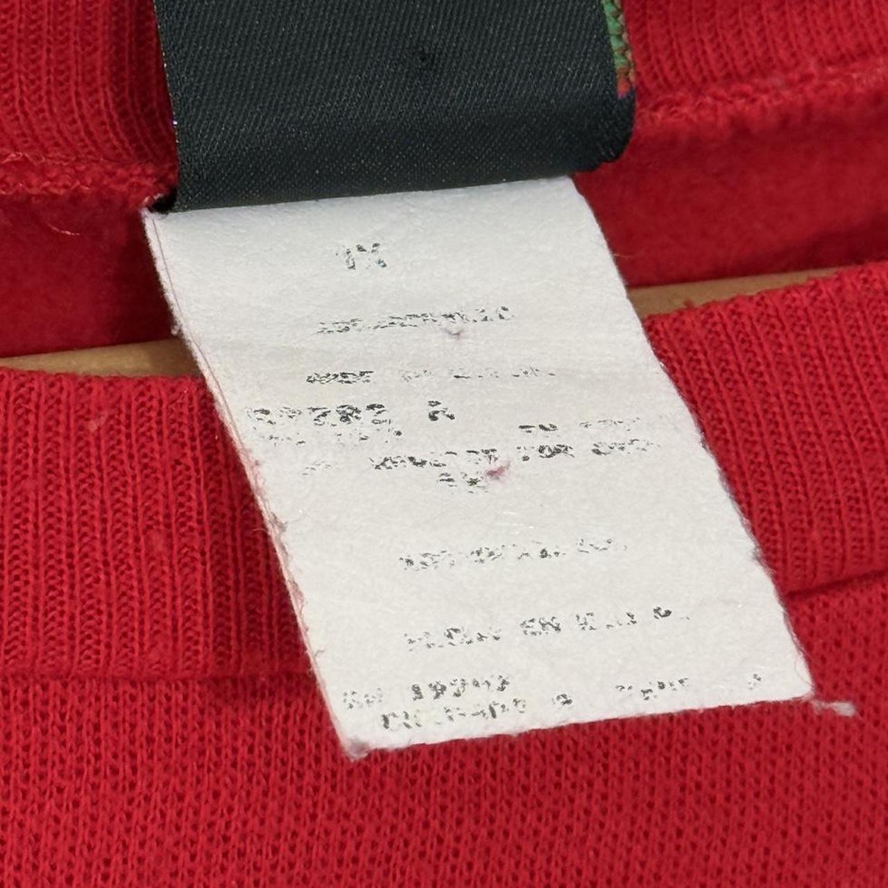 - 90s red sweatshirt by Mickey Unlimited featuring front graphic of Mickey next to Christmas tree with text "Merry Christmas". Feels like an Acrylic material, giving it a thinner and softer feel.