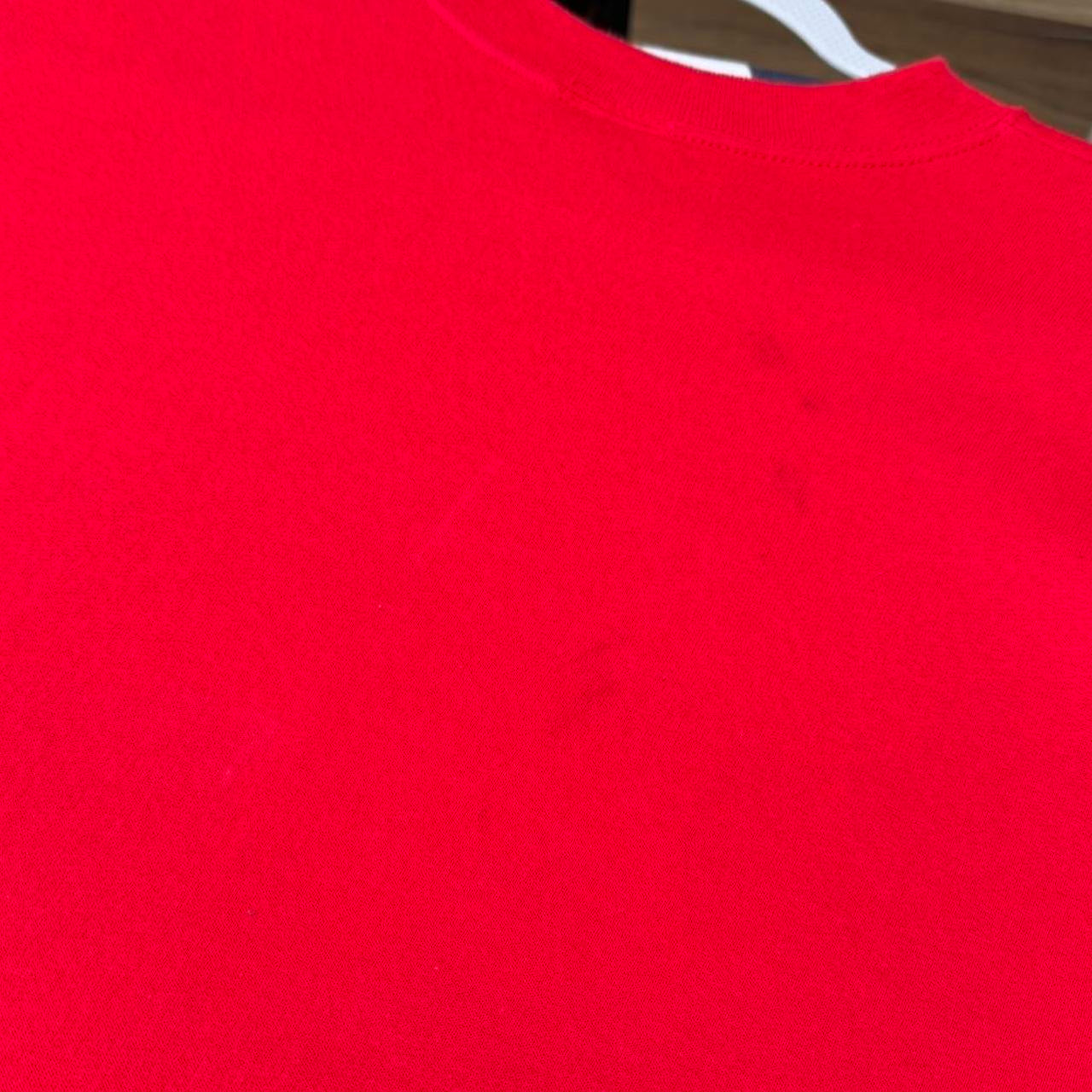 - early 00s red sweatshirt by Disney Store featuring front graphic of "Mickey" outline text, with mickey designs above.