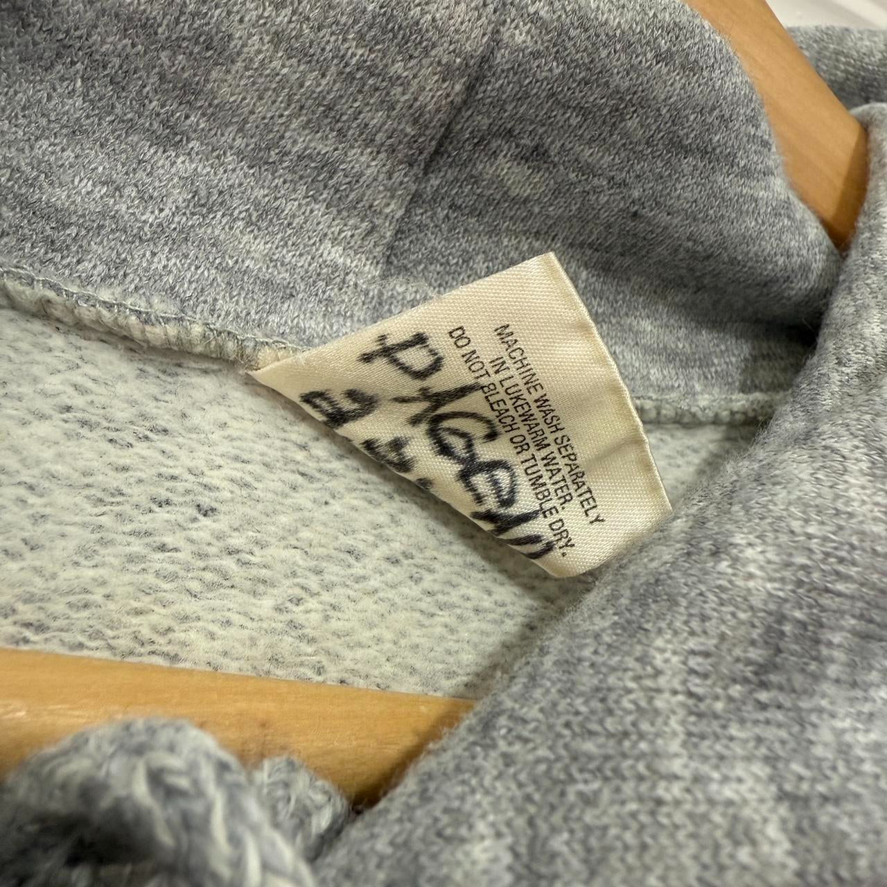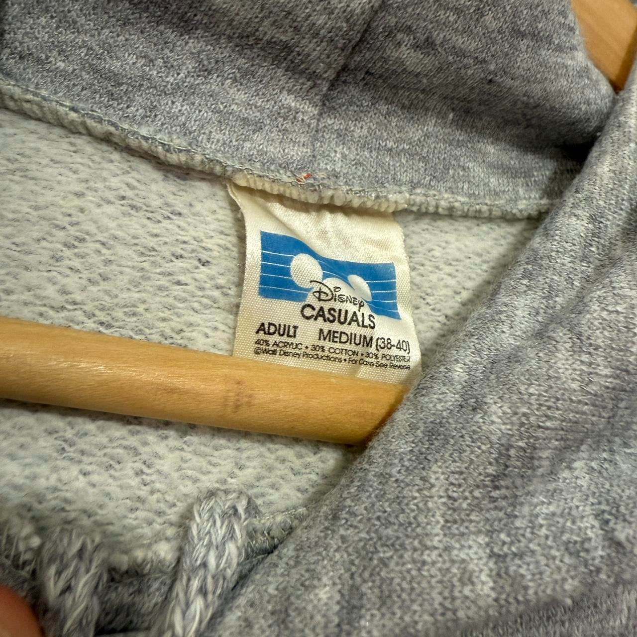 - Made in USA grey and navy 80s hoodie by Disney Casuals featuring graphic Mickey Mouse on front.