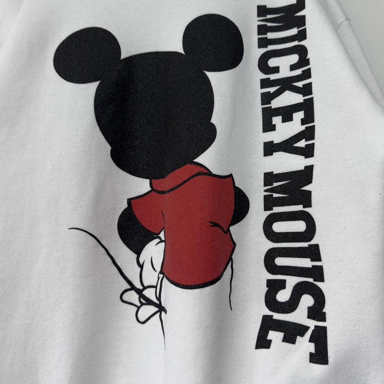 - Made in USA 90s white sweatshirt by Disney Wear featuring front and back graphic of Mickey Mouse with text