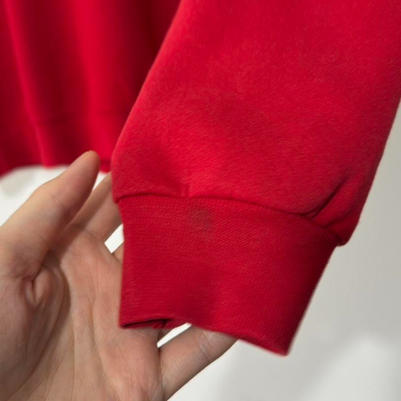 - 90s Made in USA red sweatshirt by The Disney Store featuring front graphic of Mickey mouse face with text below.