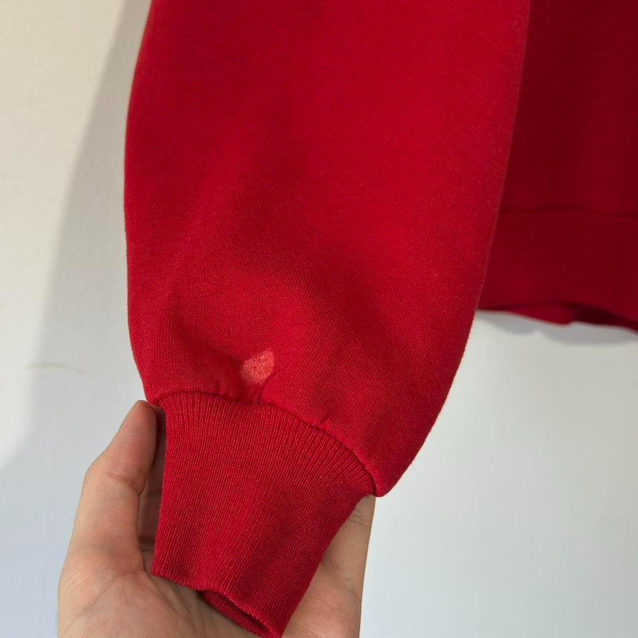 - red 90s sweatshirt featuring multicoloured Mickey text on front, with mickey face.