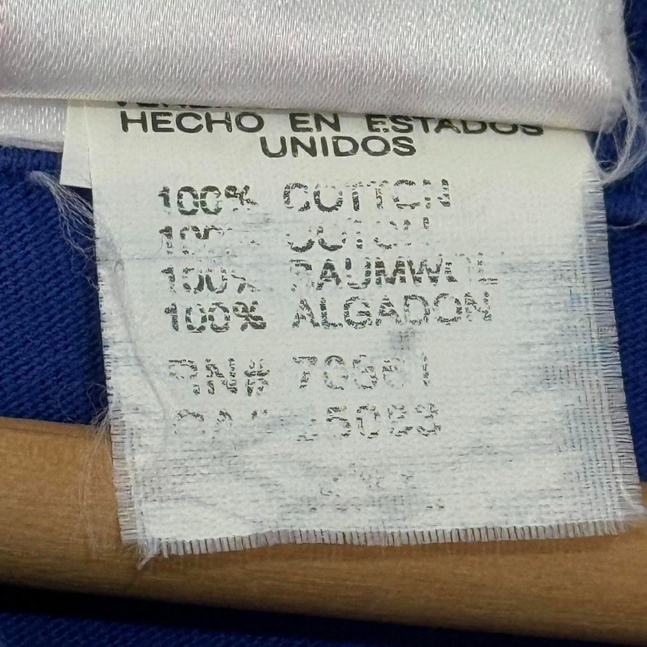 - blue 90s Made in USA t shirt on Mickey Inc tag featuring design of Mickey face and gloves with Mickey spell out below.