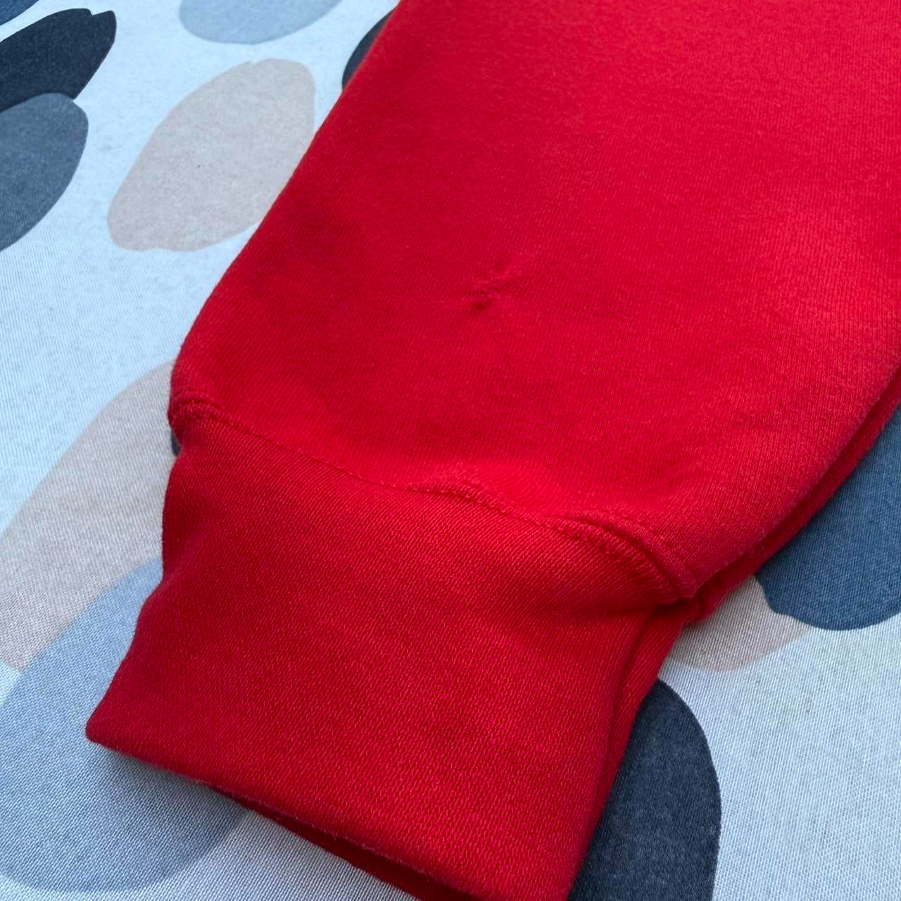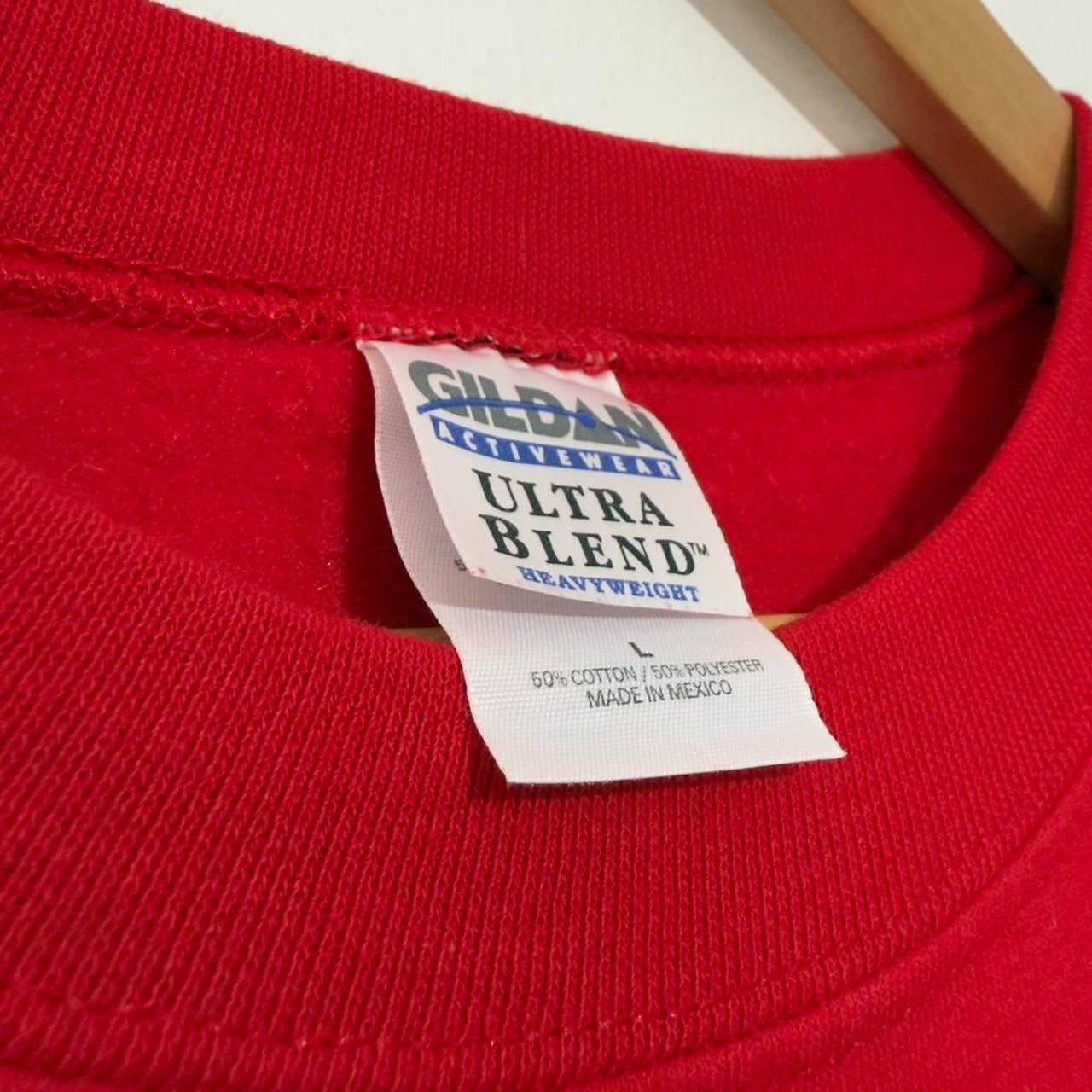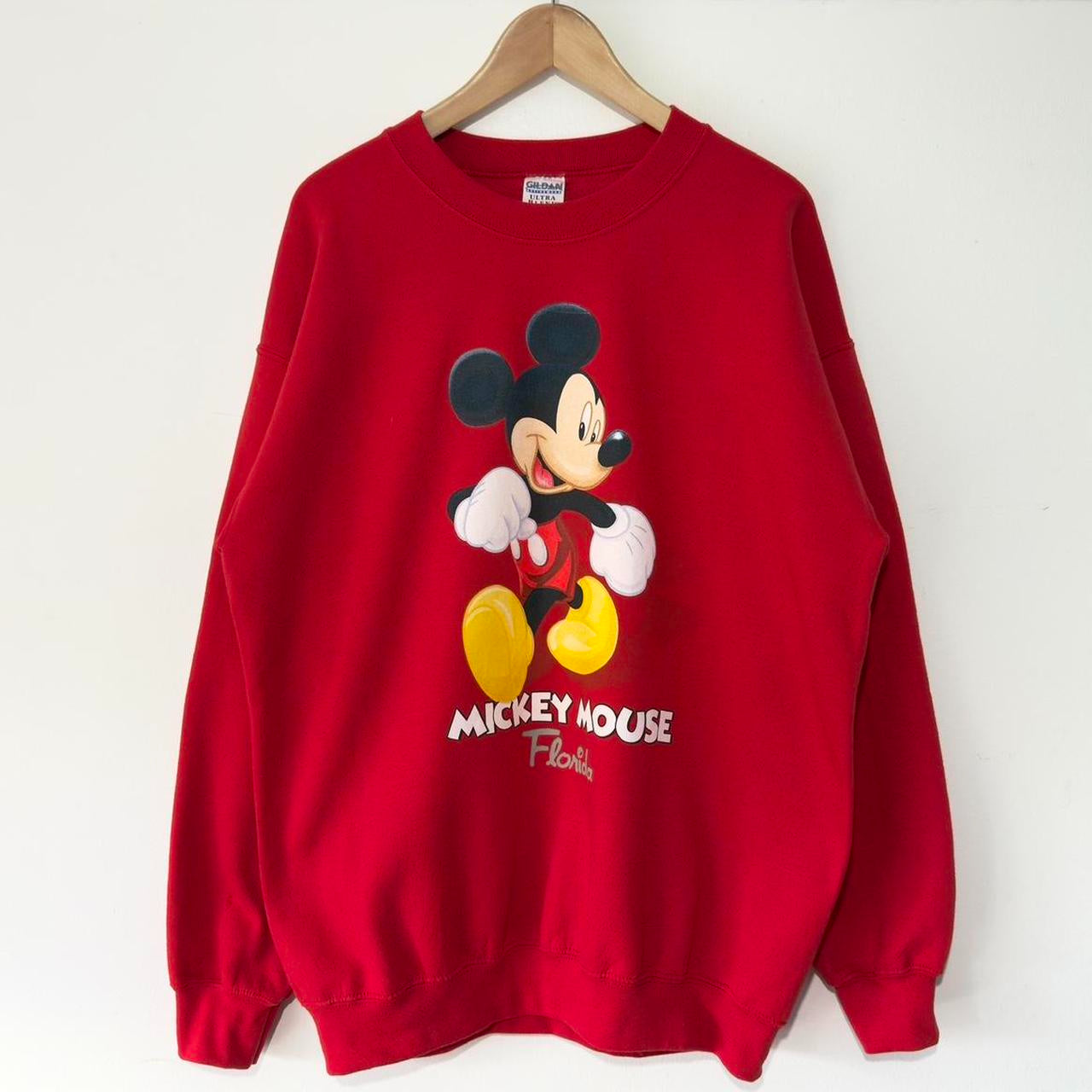 - Early 00s made in mexico red sweatshirt by Gildan featuring front graphic of Mickey Mouse with text below.