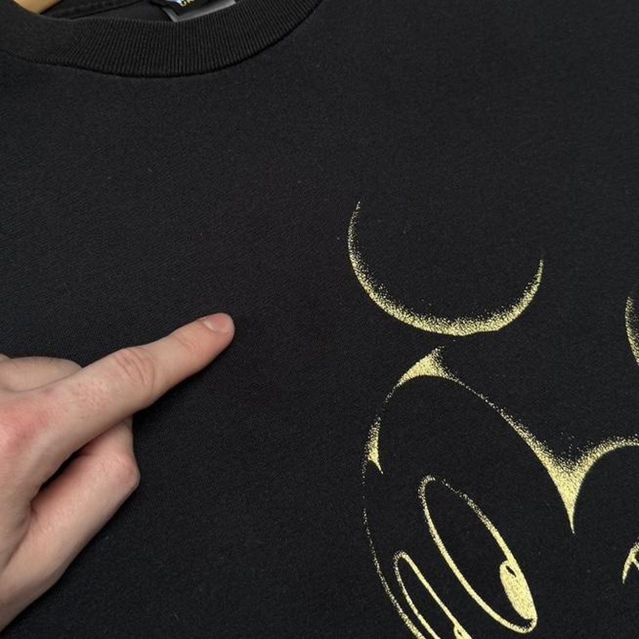 - Made in USA 90s black t shirt by Mickey Unlimited featuring front graphic of Mickey outline in gold, with "Mickey" text and "Orlando. Florida" in red.