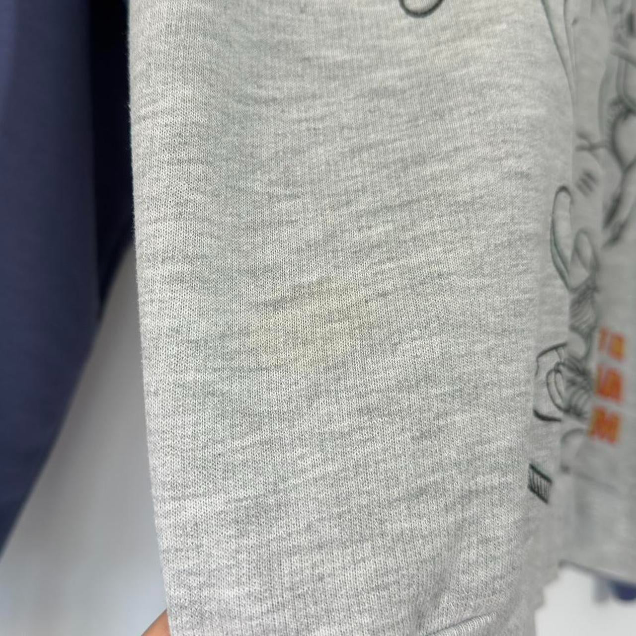 - late 90s grey and navy sweatshirt by Mickey Unlimited featuring front graphic of Mickey, Donald Duck and Goofy with text "Sports" and red Mickey, with "The Dream Team" below.