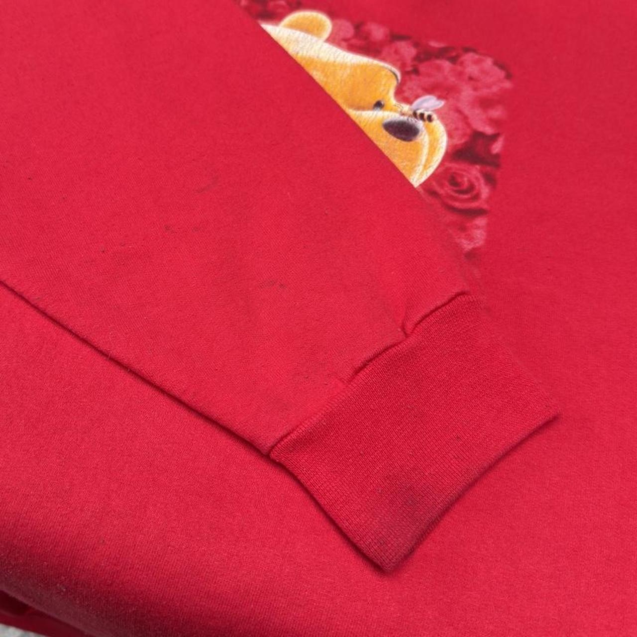 - early 00s red sweatshirt by Disney Store featuring front graphic of Pooh and text "Bee Friendly"