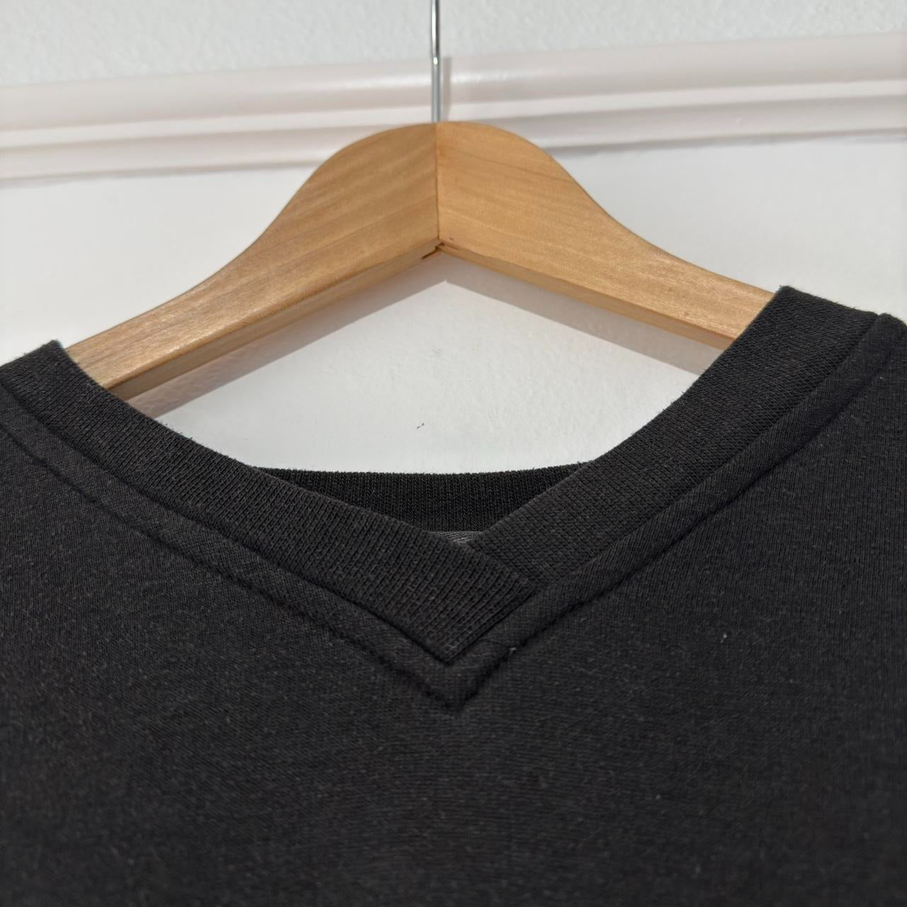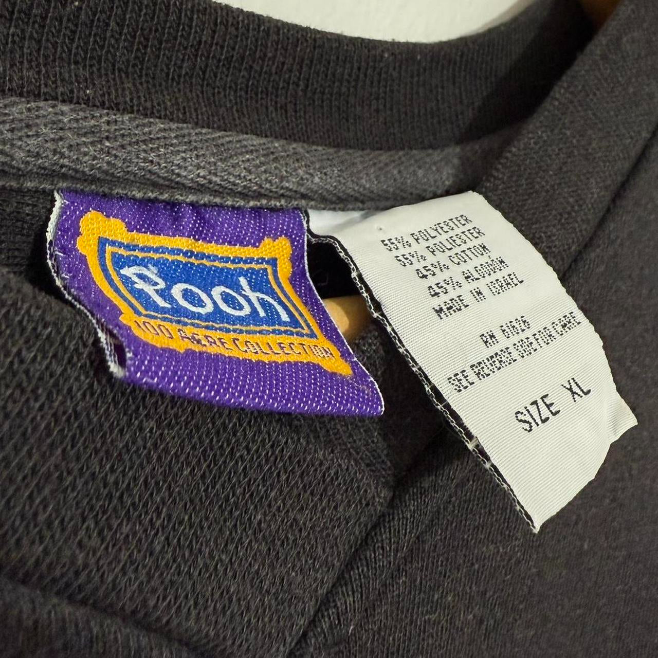 - Late 90s black v neck sweatshirt by Pooh 100 Acre Collection featuring embroidered Pooh with text and leaf.Ā