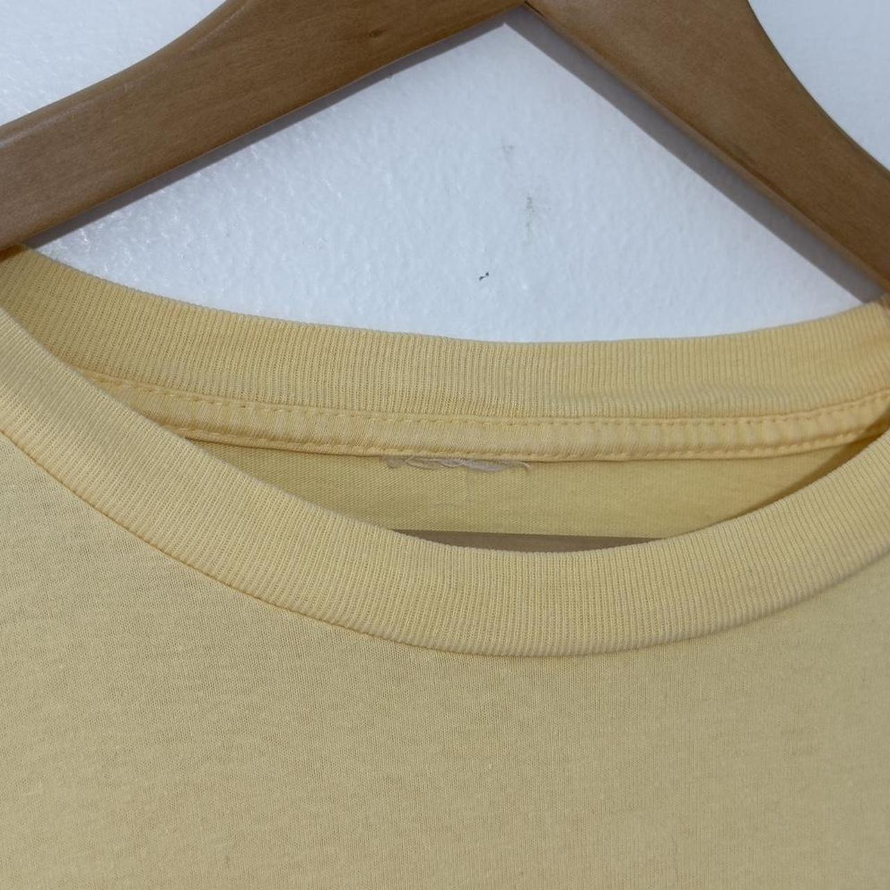 - Early 00s pale yellow t shirt by Disney Store featuring embroidered Tigger with butterflies and Flowers with "Flutterbies" green text