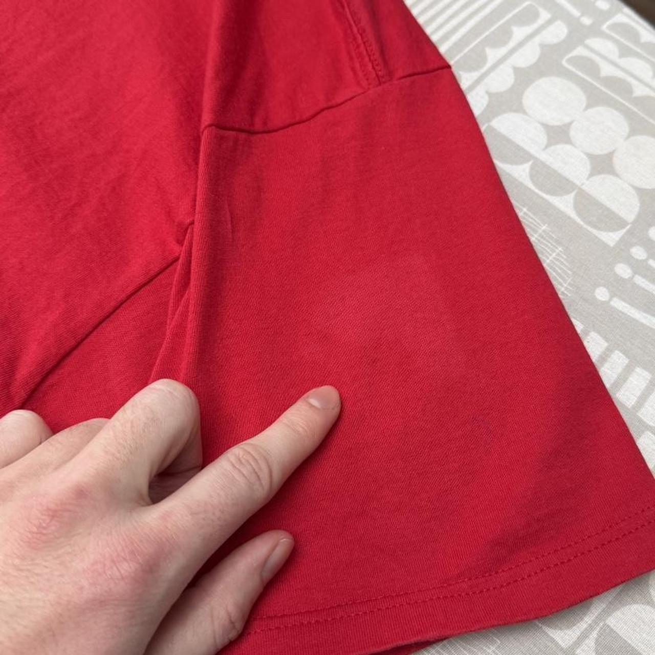 - 90s red t shirt by Mickey Inc featuring front graphic of Sorcerer Mickey casting a spell over "25" with wdw logo text below.