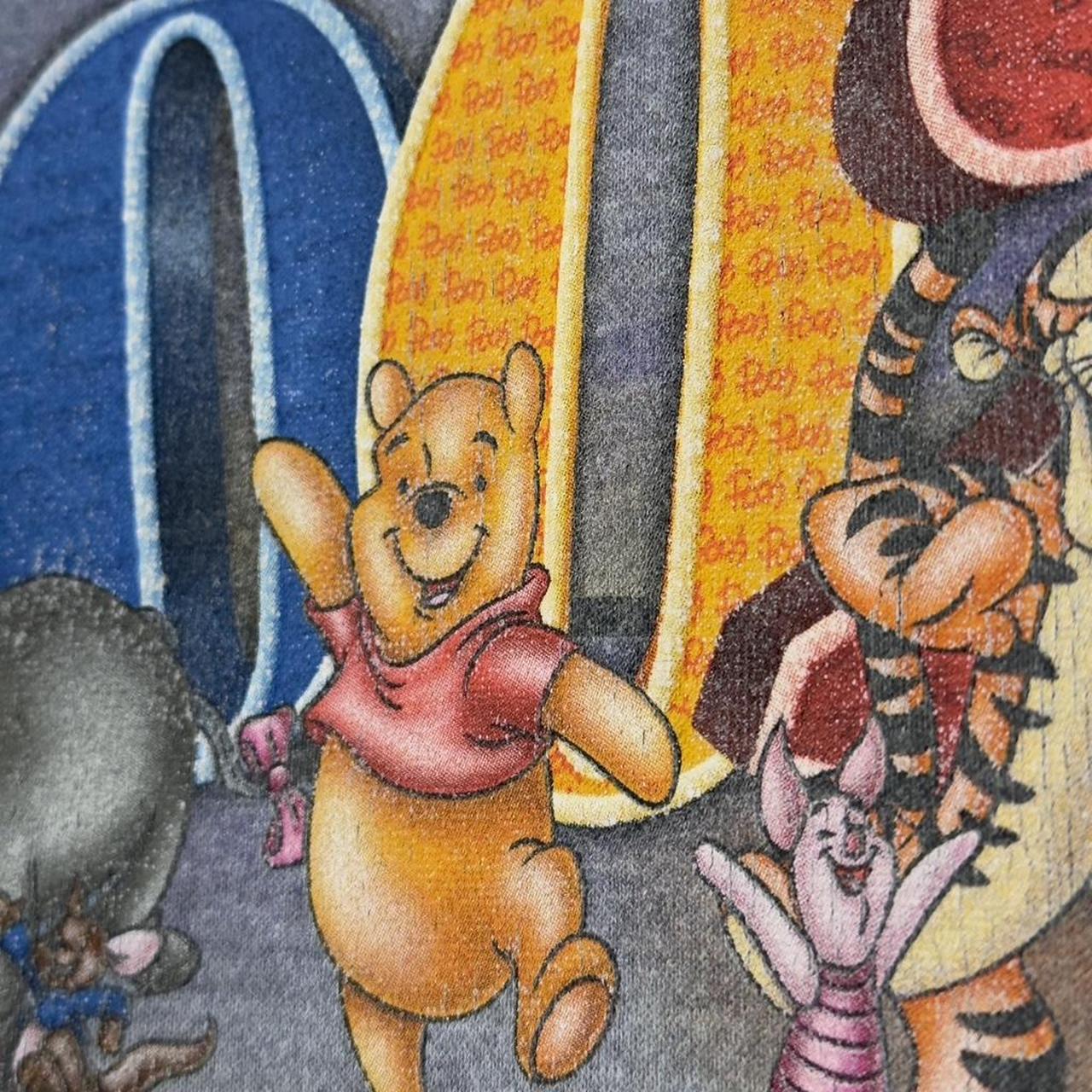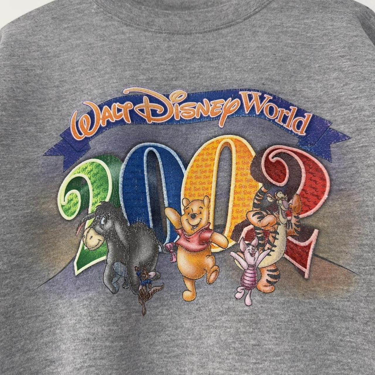 - 2002 grey sweatshirt by Walt Disney World featuring front graphic of "Walt Disney World" text on top, with multicoloured "2002" and Pooh & Friends jumping in front.