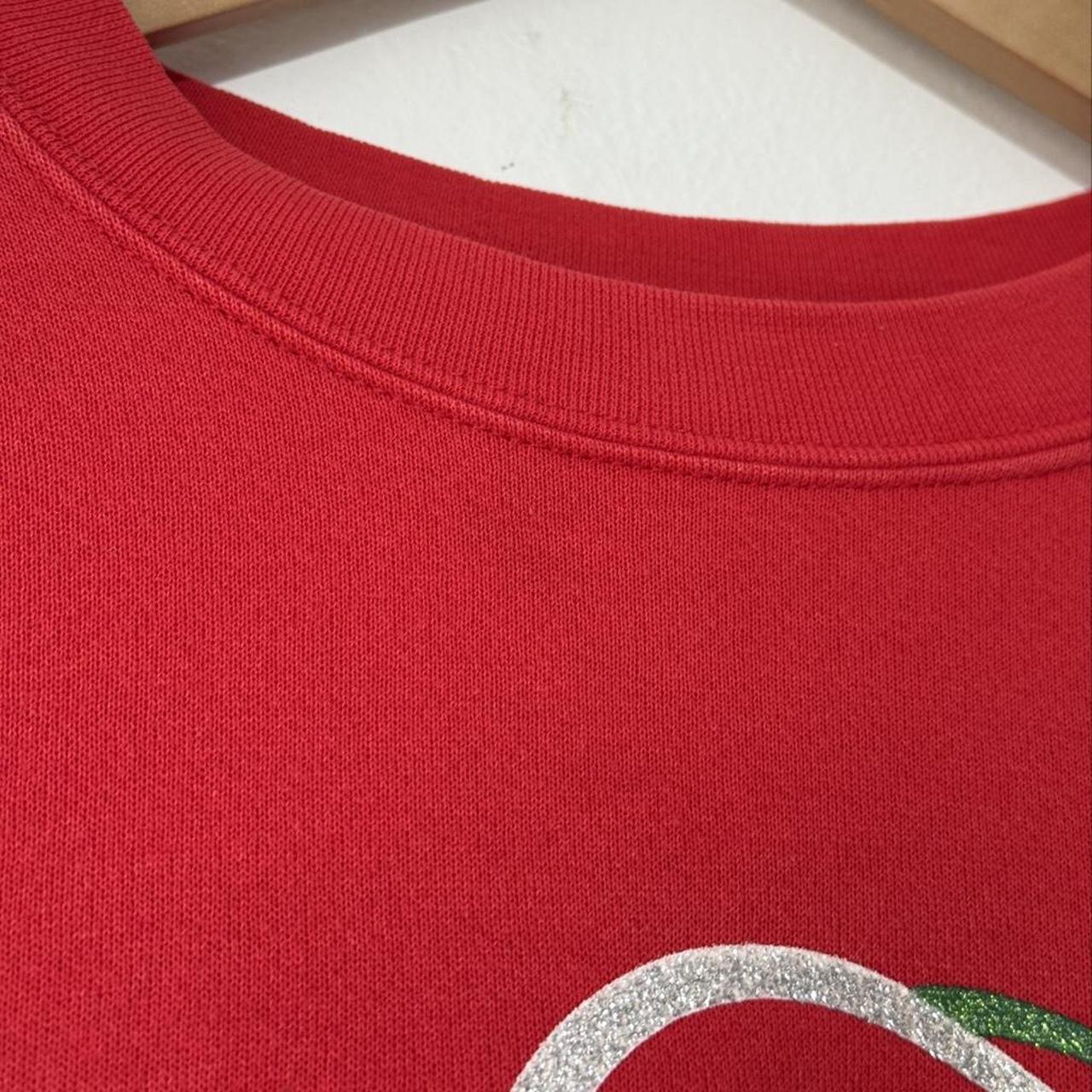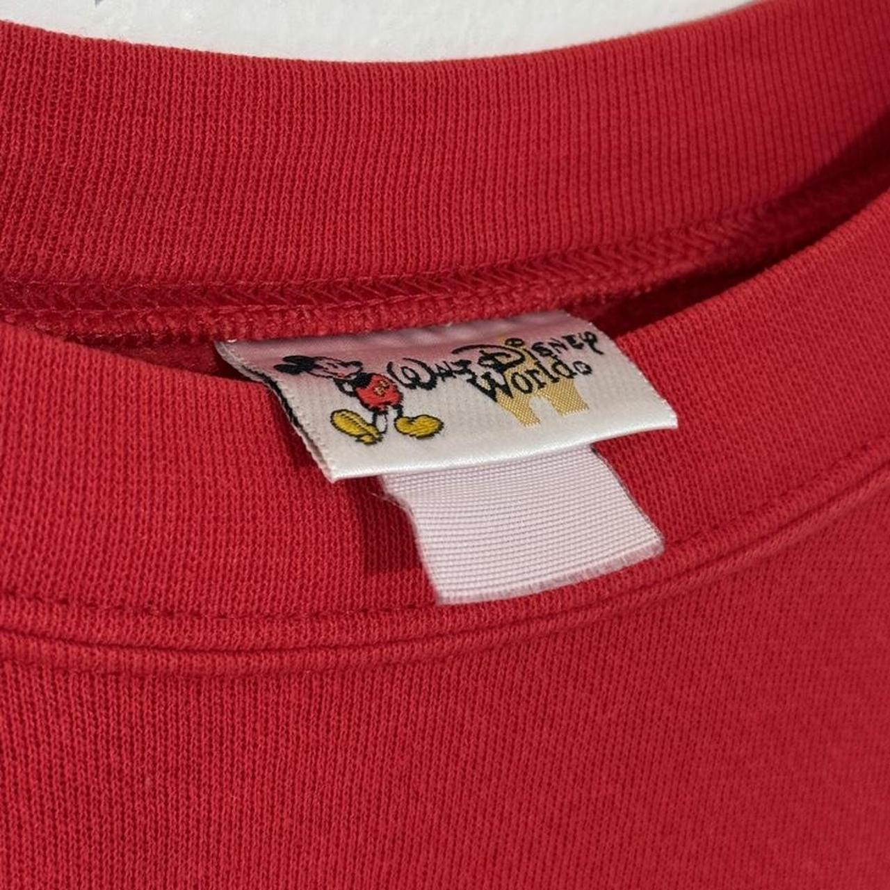 - Early 00s red sweatshirt by Walt Disney World featuring front graphic of glitter santa mickey outline with WDW logo text below.