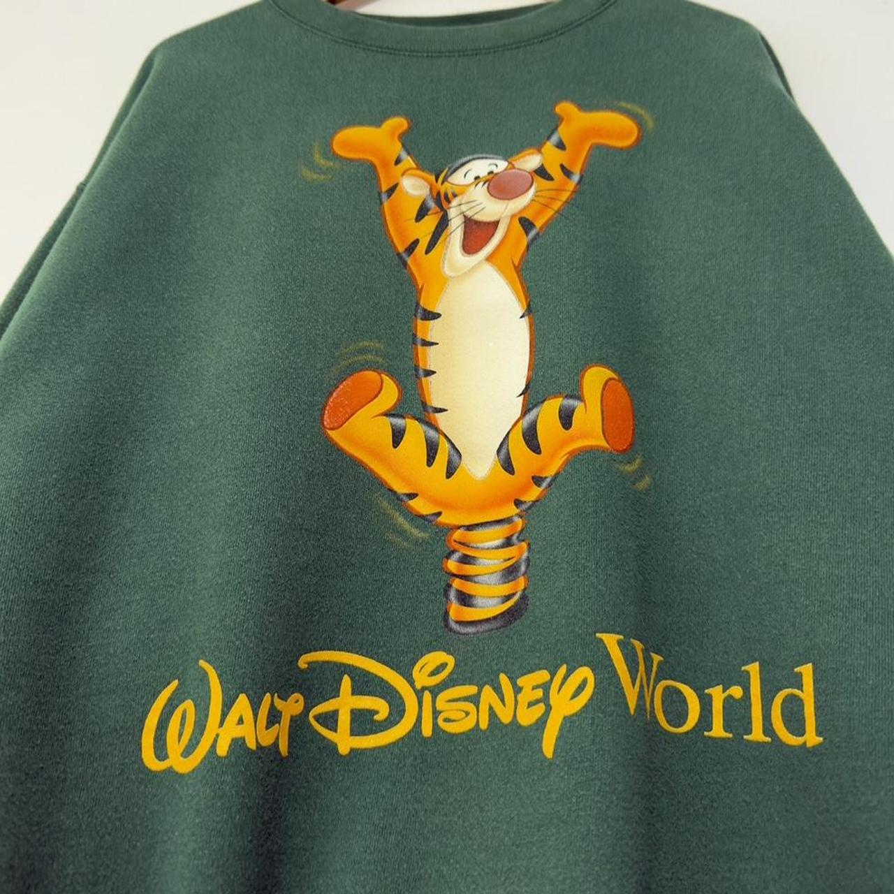 - early 00s green sweatshirt by Walt Disney World featuring front graphic of Tigger jumping with "Walt Disney World" text logo