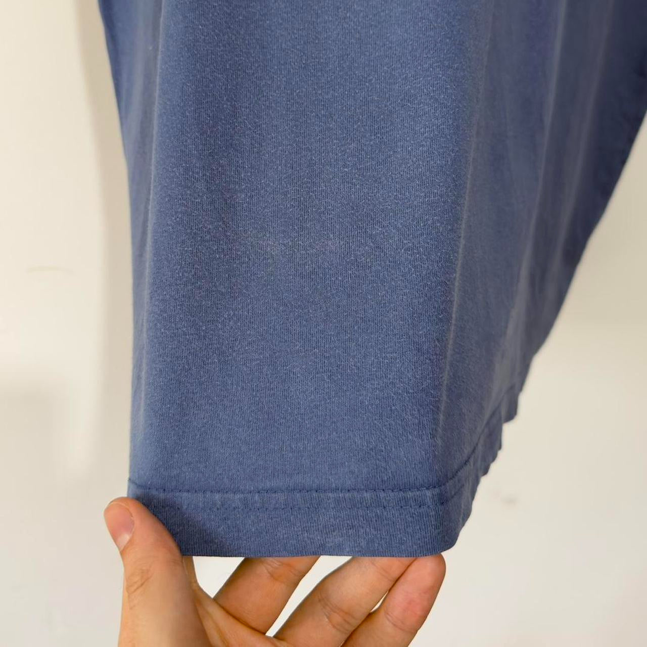 - early 00s faded blue pocket t shirt by The Disney Store featuring embroidered Pooh with basket eating honey with bees around.
