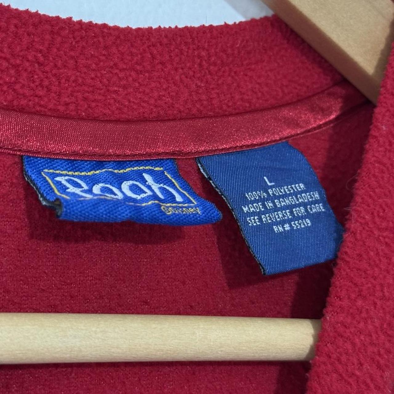- Early 00s red fleece style sweatshirt by Pooh featuring embroidered Winnie the Pooh with gems in snowflakes