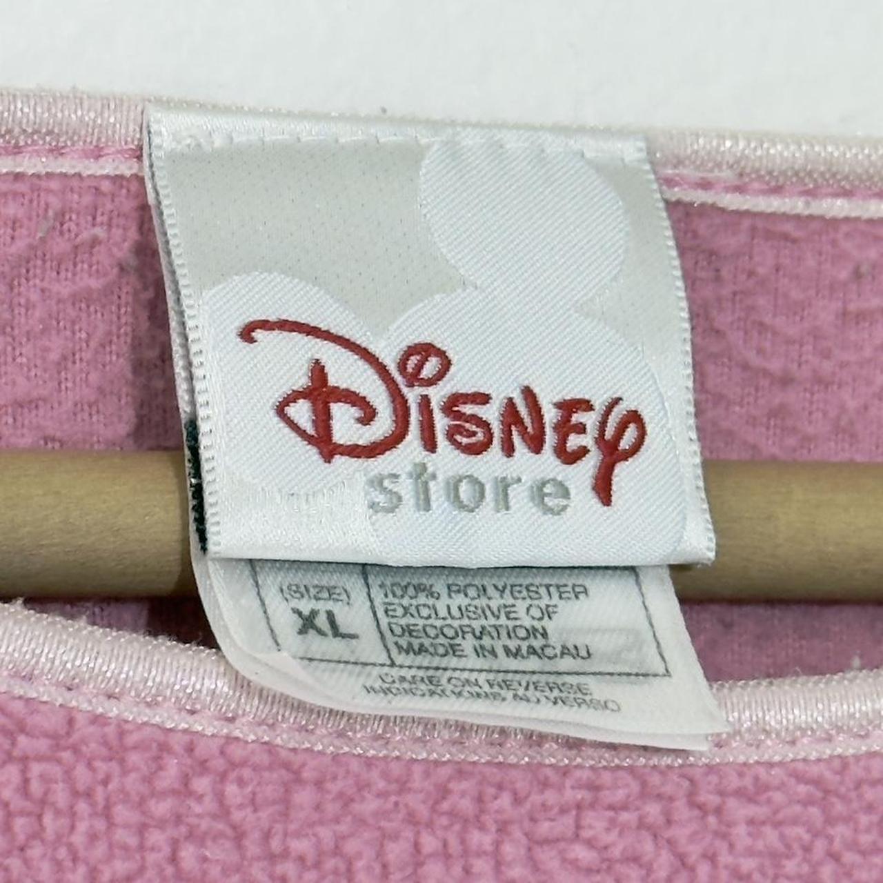 - Early 00s pink fleece style sweatshirt by Disney Store featuring embroidered Eeyore on chest with snowflakes.